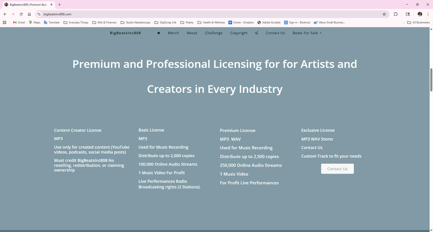custom websiteproducer | big beats inc 808